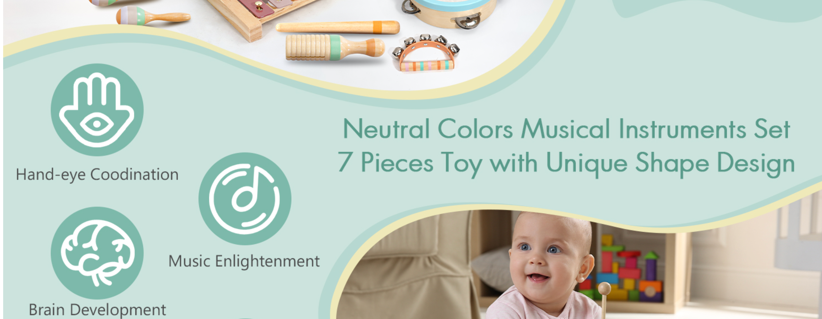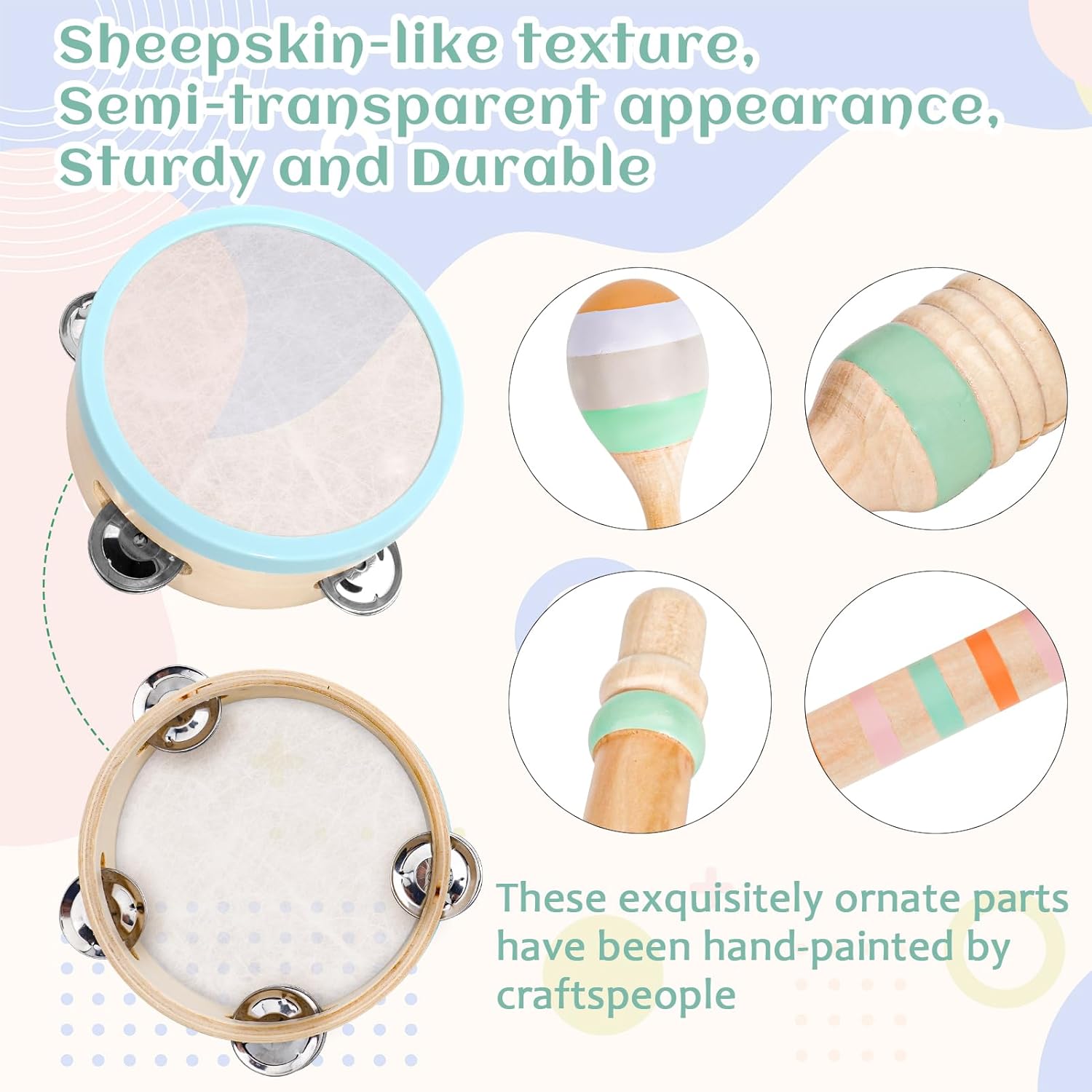 This 7-in-1 wooden toddler musical instrument set offers a fun and educational way to introduce kids to the world of music. Complete with a xylophone, tambourine, clarinet, triangle, wood sounder, maracas, hand bell, and wooden sticks, the set is designed to inspire creativity, improve rhythm, and develop motor skills. Made with smooth, non-toxic materials and soft neutral colors, these instruments are safe for little hands and perfect for Montessori-inspired learning and play.