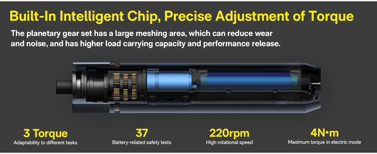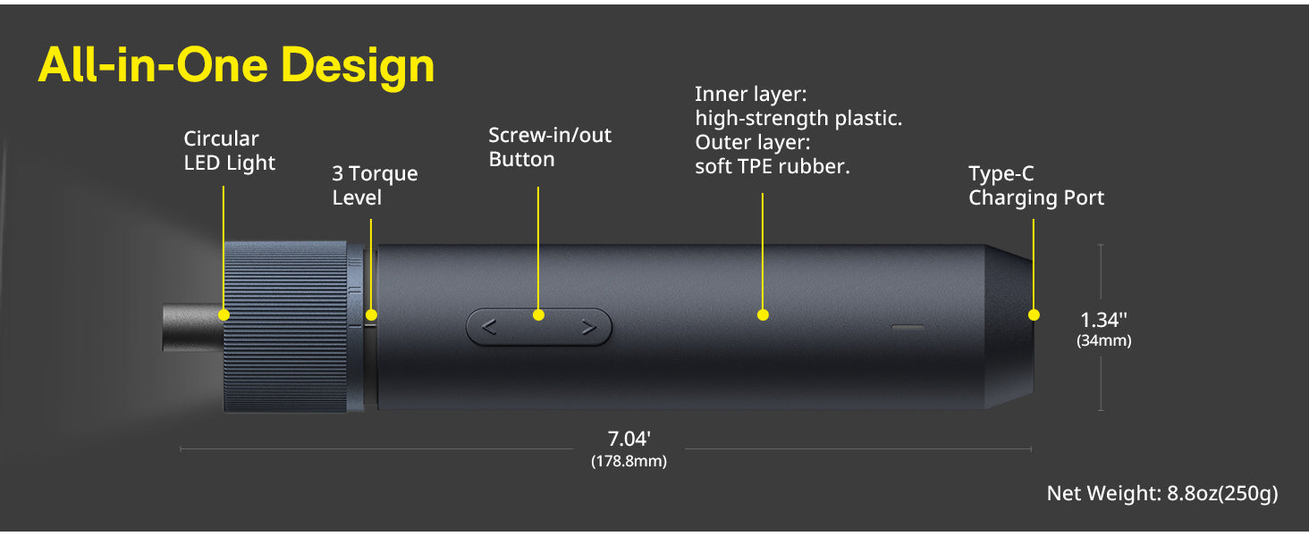 Experience power, precision, and portability with this Premium 25-Piece Electric Screwdriver Set—engineered for anyone who wants professional-level performance in a compact, easy-to-use tool. Designed with durable S2 steel bits, three adjustable torque modes, and a smart shadow-free LED ring light, this electric screwdriver makes everyday repairs faster, easier, and more accurate.