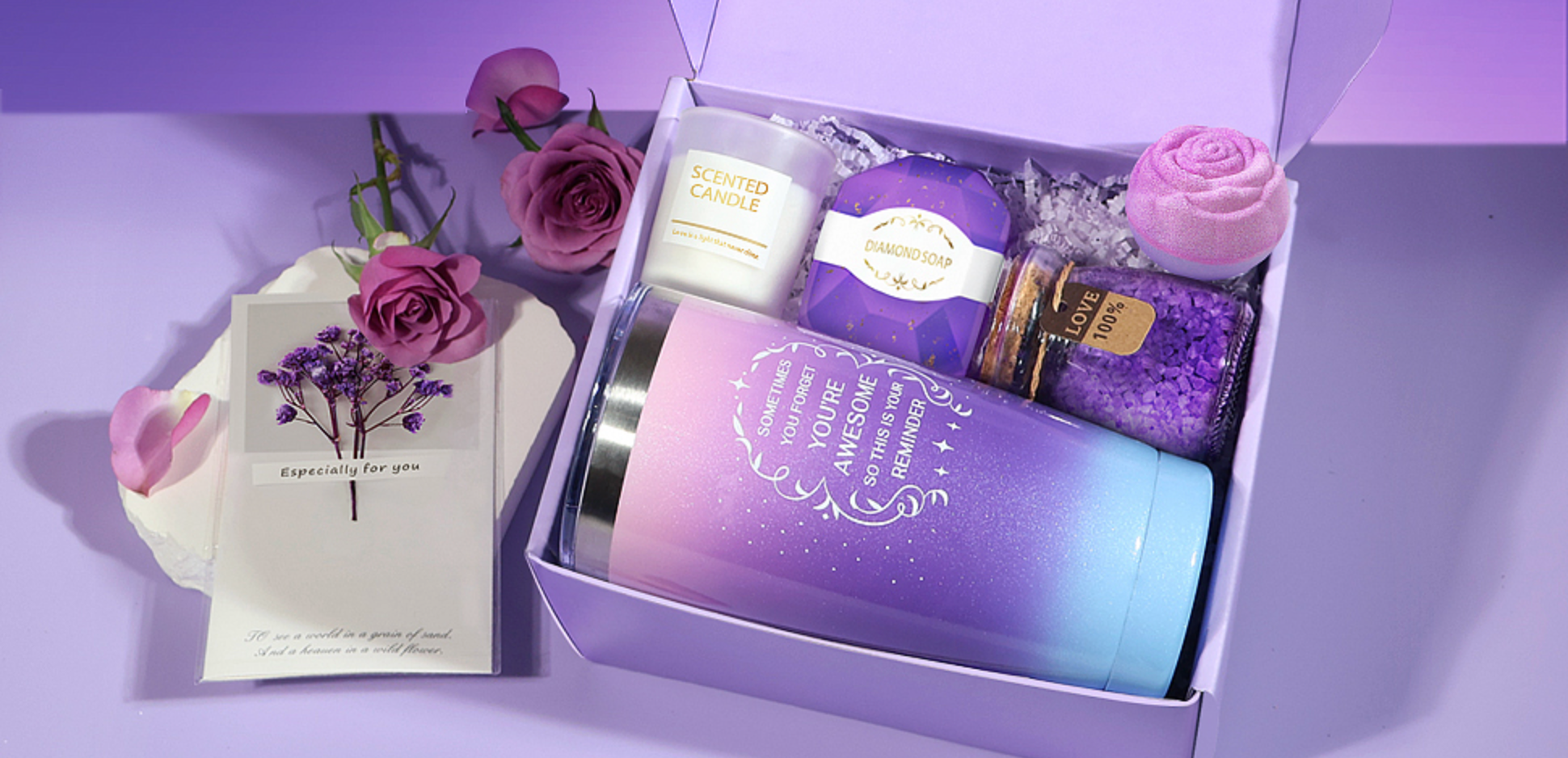 Premium lavender-style gift box with “JUST FOR YOU” cover