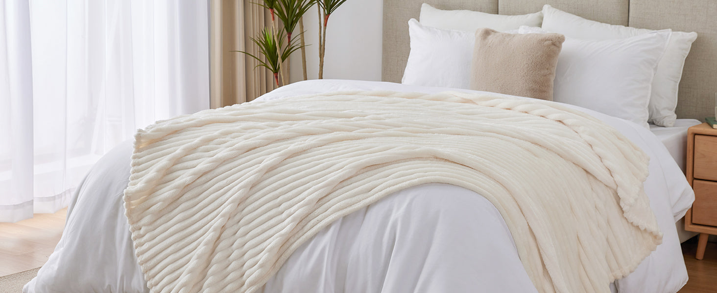 Wrap yourself in elevated comfort with this upgraded fleece blanket, thoughtfully designed for warmth, softness, and style. Featuring a higher-weight fabric and widened 3D stripes, it delivers a plush, dimensional look that enhances any room’s cozy aesthetic. Crafted from 100% microfiber polyester with a dense 300GSM double-sided finish, this throw offers a luxuriously soft feel—lightweight, breathable, and irresistibly cozy.