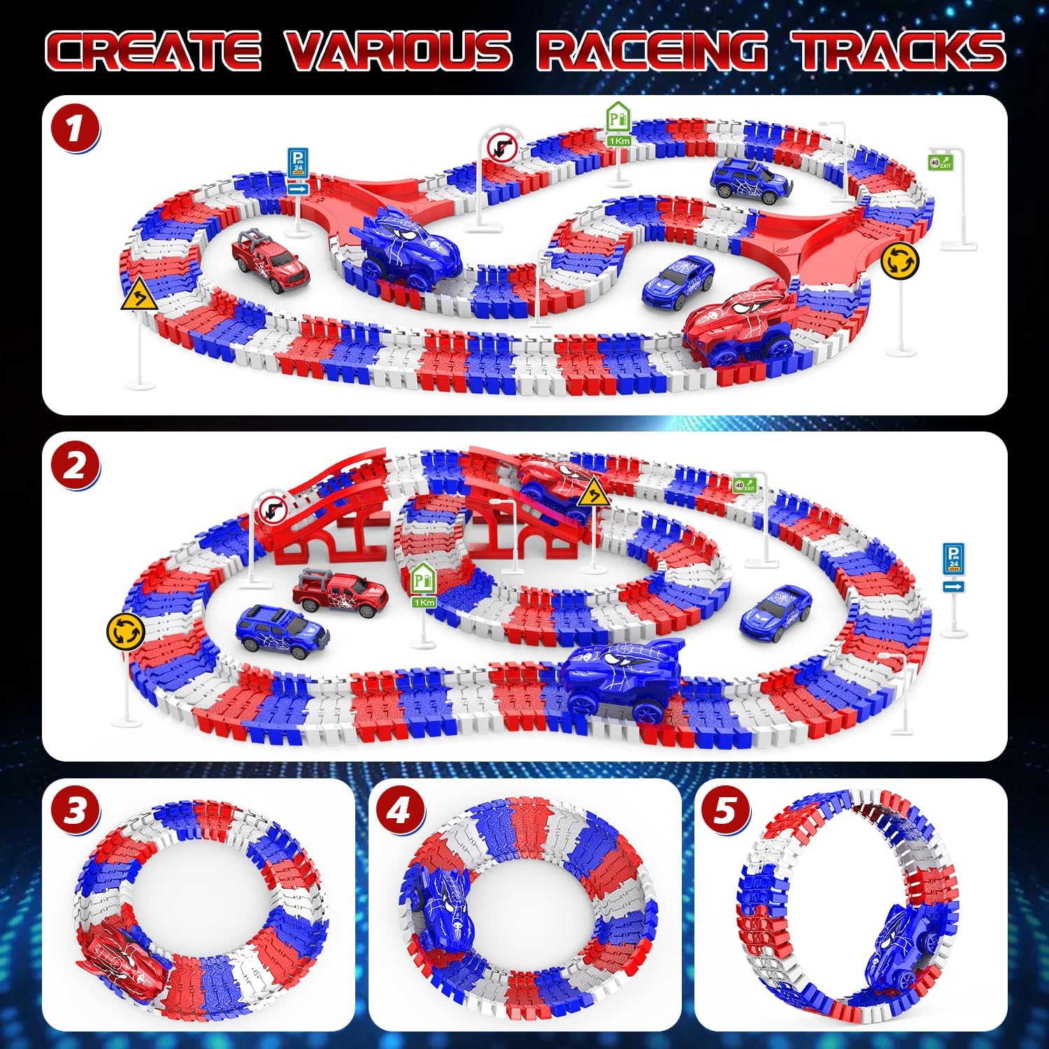 Spider Toy Track Set with 140+ Flexible Pieces, Spider Cars & Mini Vehicles