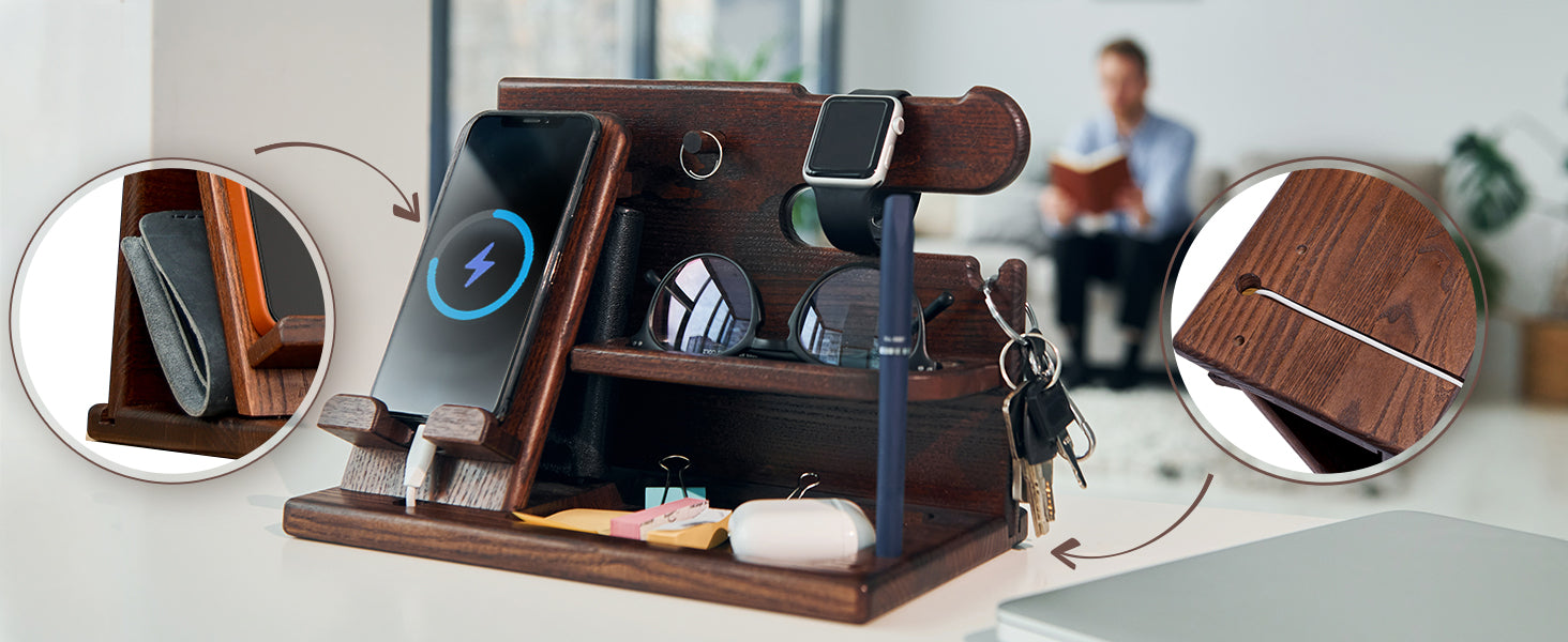 Model Name: Wood Phone Docking Station - Nightstand Organizer